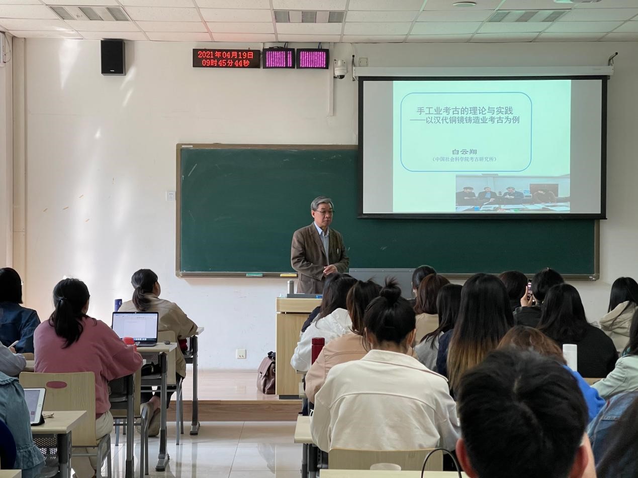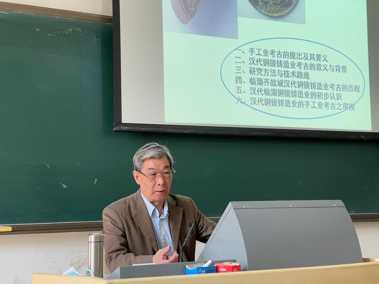 登峰战略学者、考古研究所原副所长白云翔研究员应邀在我校研教楼120教室为2020级文博专硕作了题为手工业考古的理论与实践——以汉代铜镜铸造业考古为例的专题讲座。